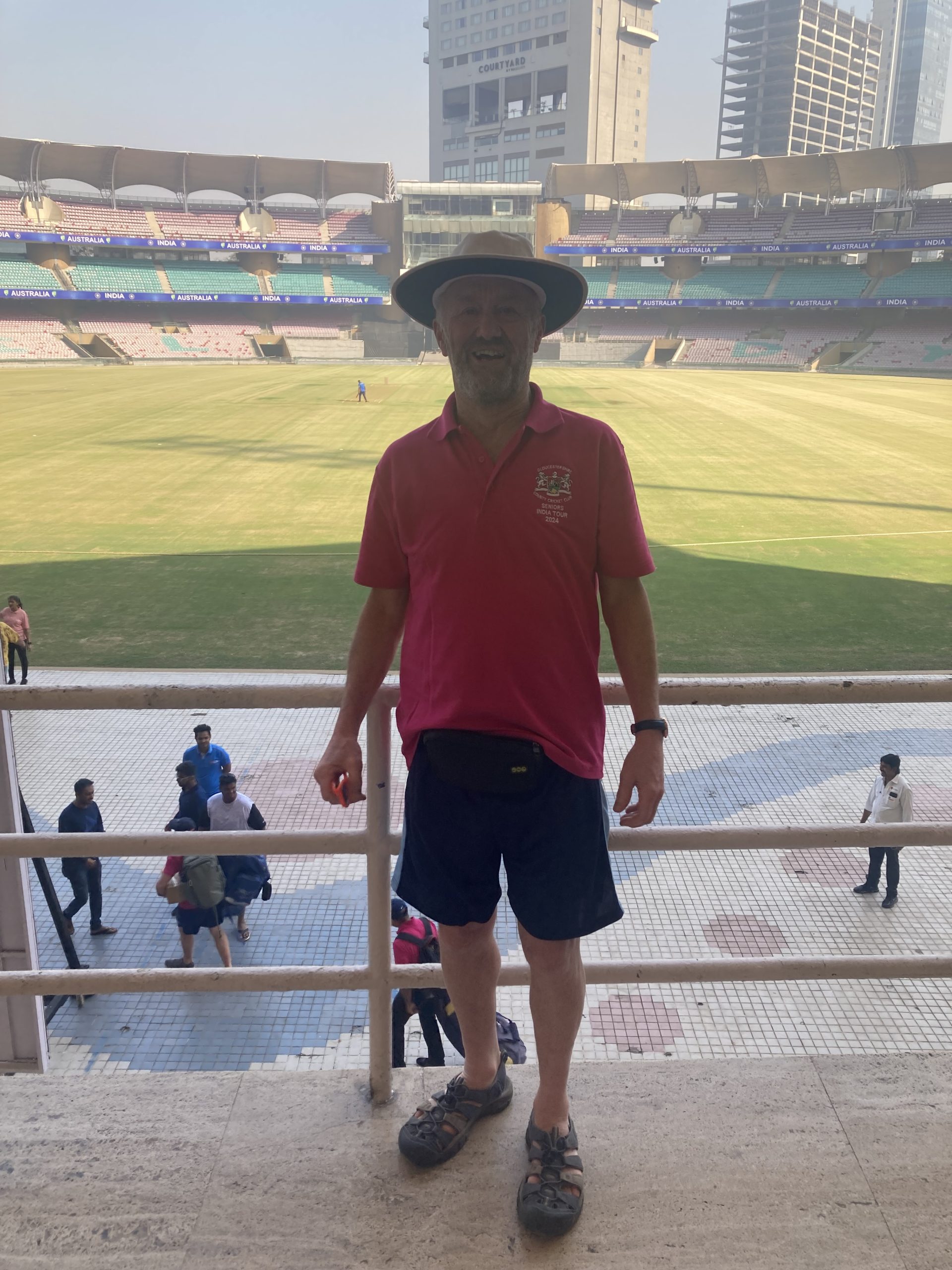I was watching the Women’s World Cup cricket from India. Today’s game was from the DY Patil Stadium in Mumbai. Those of you who have been reading this blog for a while will remember I have been twice to Mumbai to play cricket. My first time was February 24 and we were fortunate enough to play at the DY Patil Stadium– the crowd was significantly smaller than today’s game (there was about 20 + then) A couple of pictures from that memorable day!